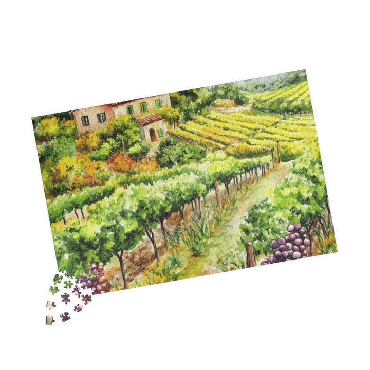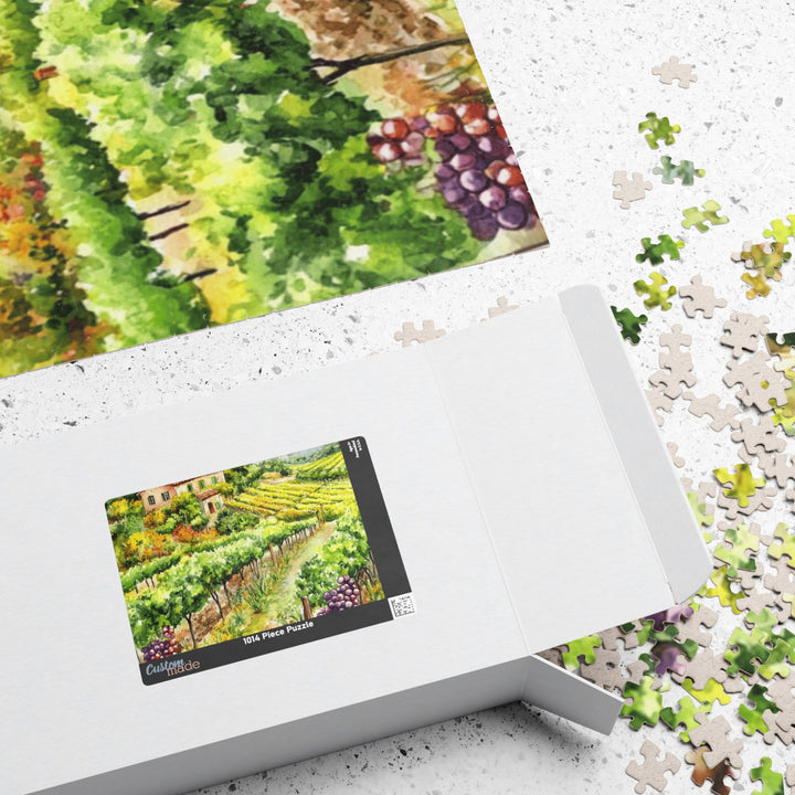 Beautiful Watercolor puzzle, 110, 252, 520, 1014 piece, (a) county side vineyard, family jigsaw puzzle for adults & kids, wine puzzle game, glossy laminated puzzle