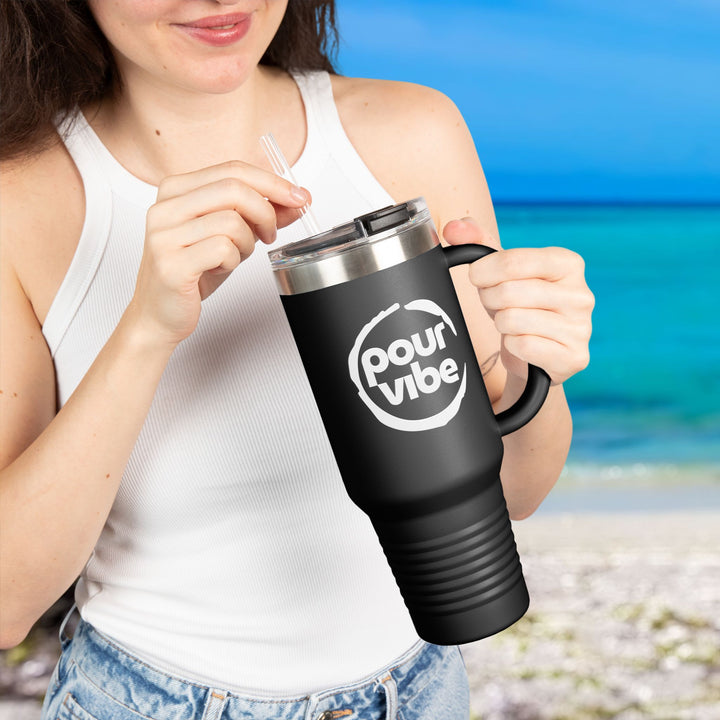 Premium Durable 40 oz (1.18 L) Insulated Stainless Steel Tumbler, Secure Straw Lid, Thermal travel Tumbler, BPA‑Free Straw Lid, Double Wall Hot & Cold, PourVibe W&B
