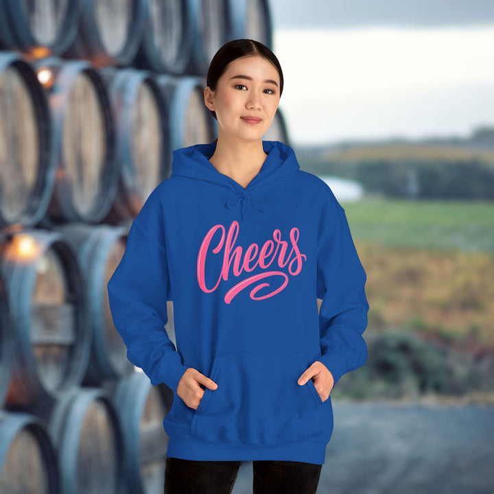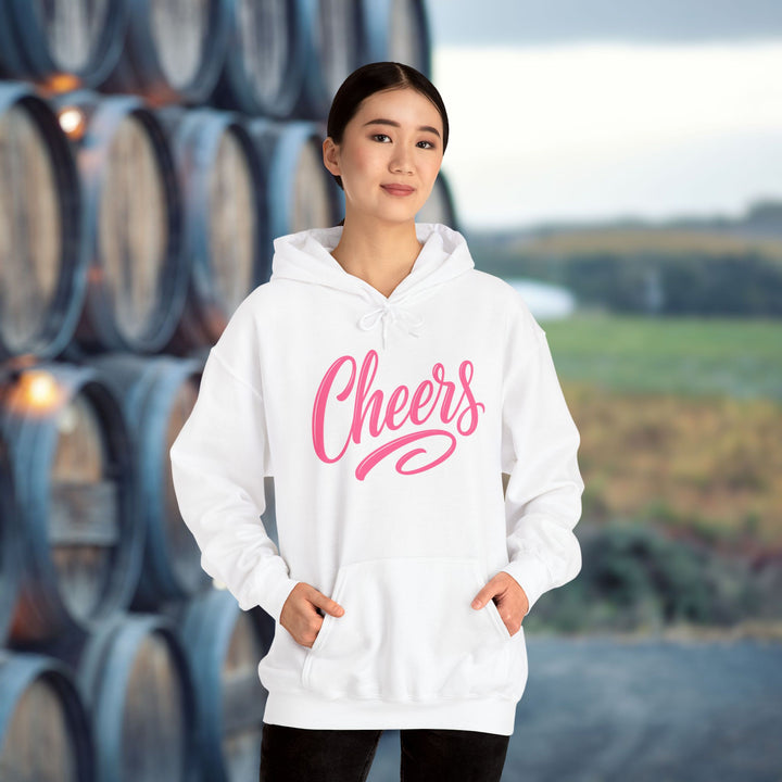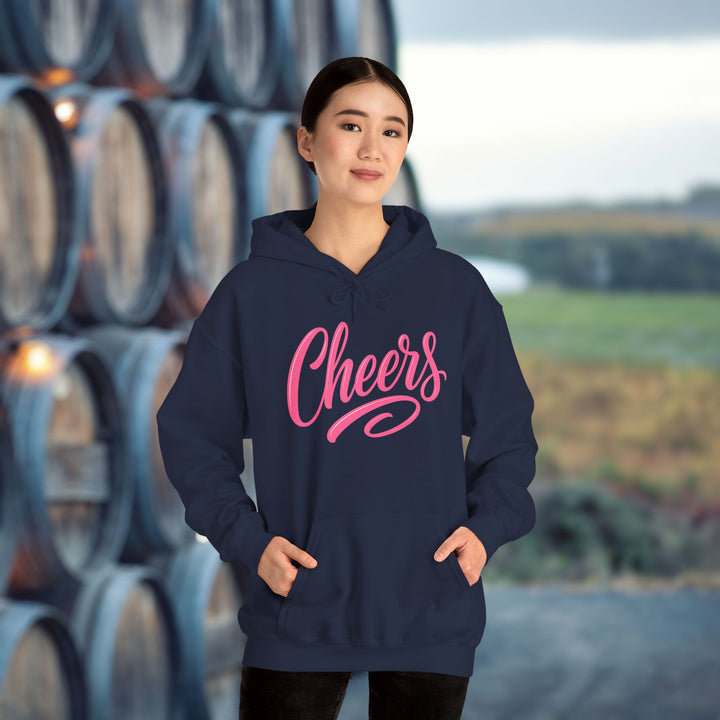 Hoodie for Women, funny saying, Durable Soft Cotton-Poly Blend hoodie with Pocket for All Season, Casual Wear, Ethically Made, Cheers Pink Design