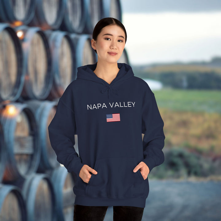 Hoodie for Women, funny saying, Durable Soft Cotton-Poly Blend hoodie with Pocket for All Season, Casual Wear, Ethically Made, Napa Valley USA flag Design