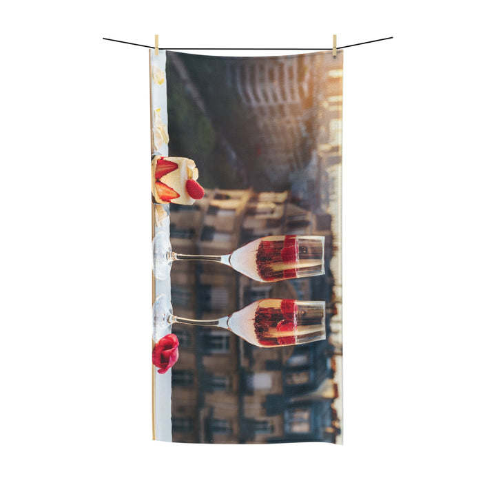 Luxury Beach Towel for Summer, Soft & Absorbent Quick-Dry Cotton Towel for Beach, Pool, Spa, or Everyday Comfort, Lightweight & Stylish Towel - Paris Two Champagne Glasses Design