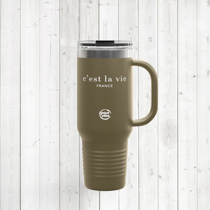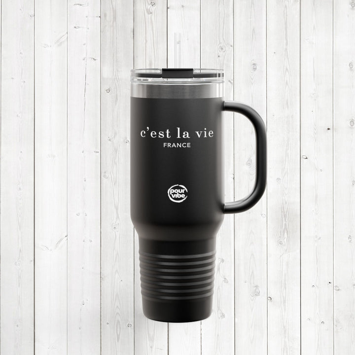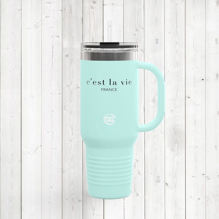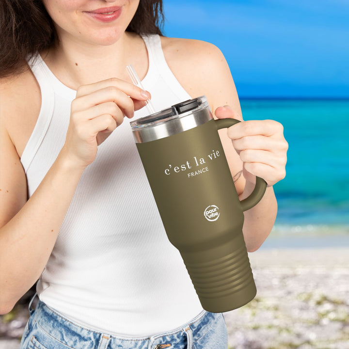 Premium Durable 40 oz (1.18 L) Insulated Stainless Steel Tumbler, Secure Straw Lid, Thermal travel Tumbler, BPA‑Free Straw Lid, Double Wall Hot & Cold, mug - c'est la vie2