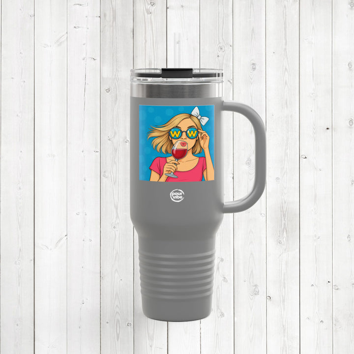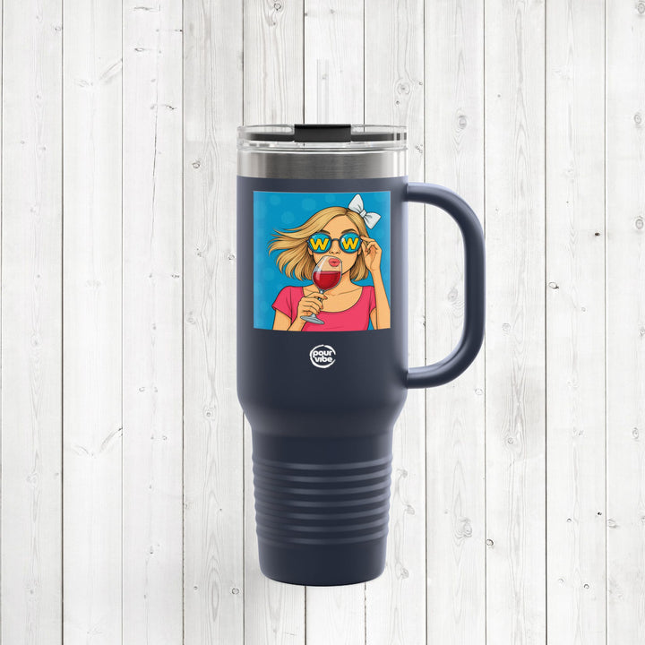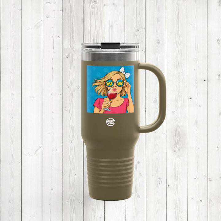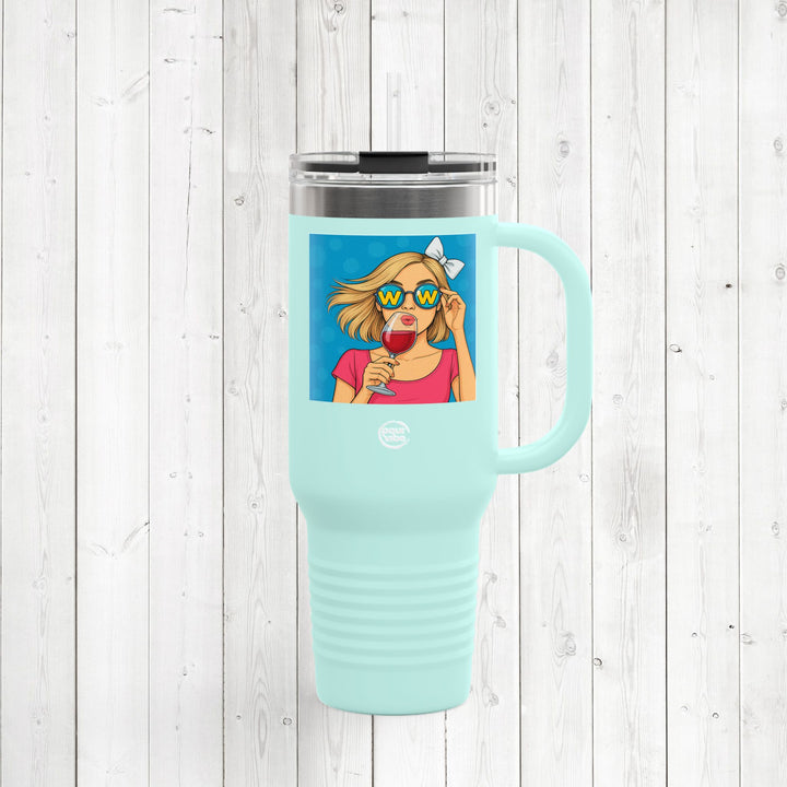 Premium Durable 40 oz (1.18 L) Insulated Stainless Steel Tumbler, Secure Straw Lid, Thermal travel Tumbler, BPA‑Free Straw Lid, Double Wall Hot & Cold, Woman Pop art Design
