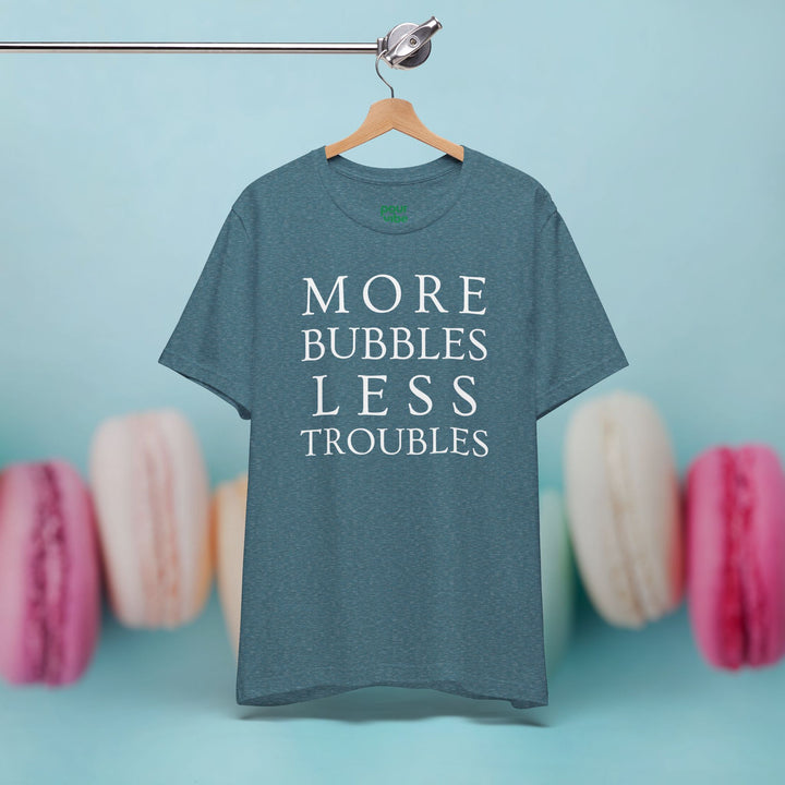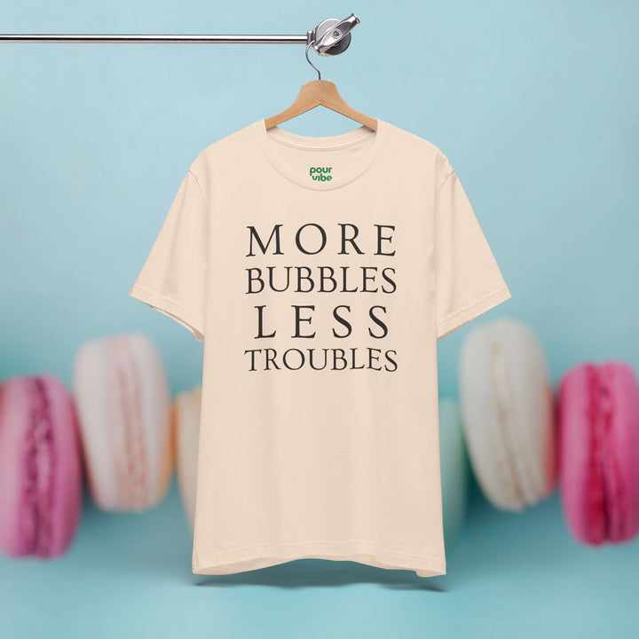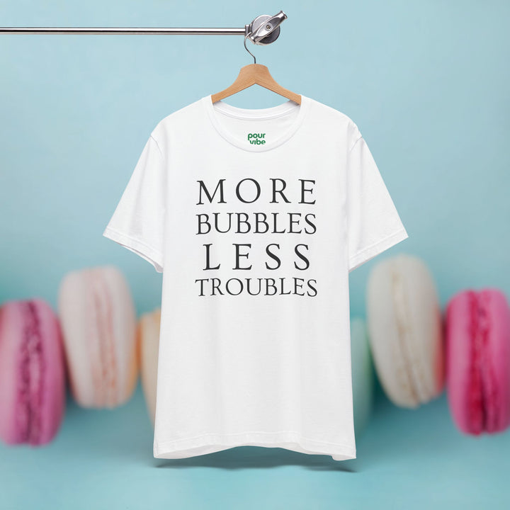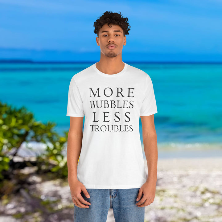 Premium T-Shirt for men, Funny Design, Stylish Tee, Joke Graphic Shirt, Saying, Sarcastic Gift, more bubbles less troubles L