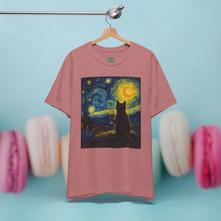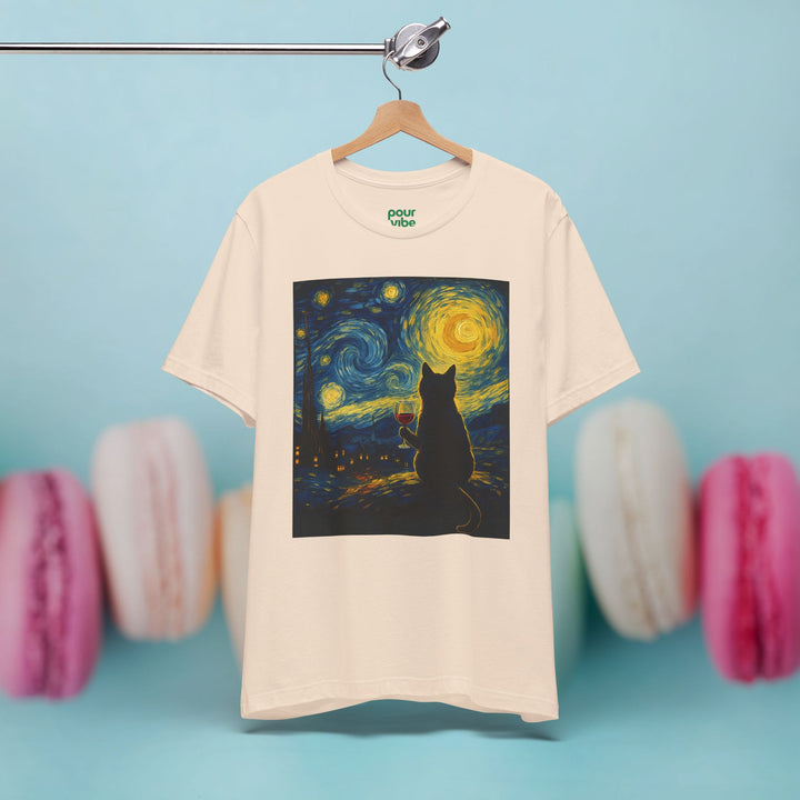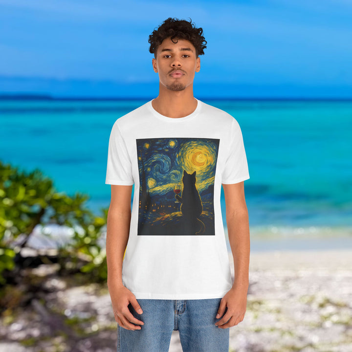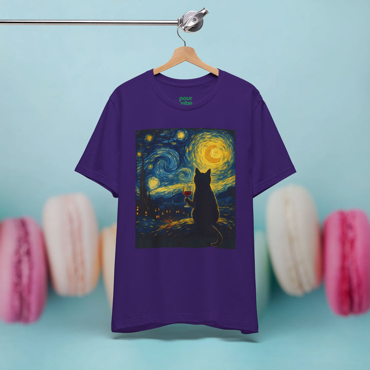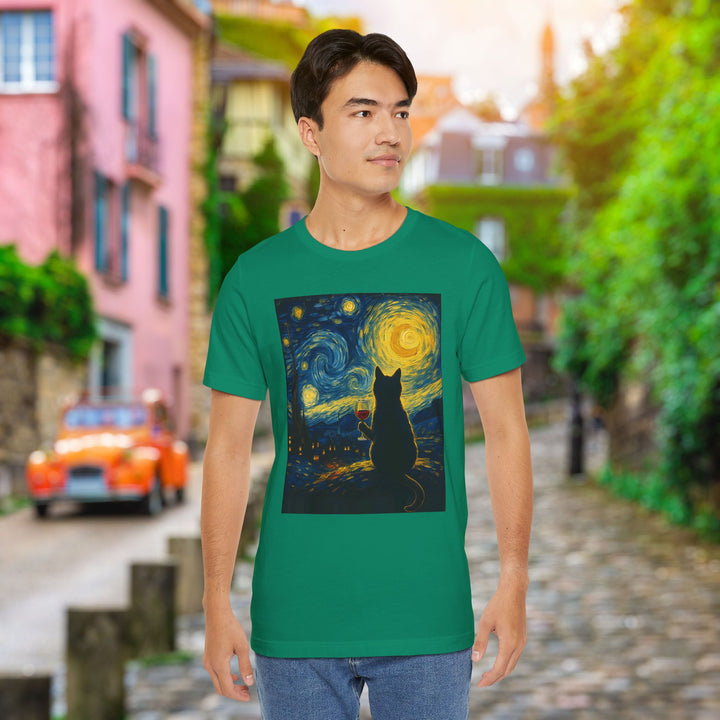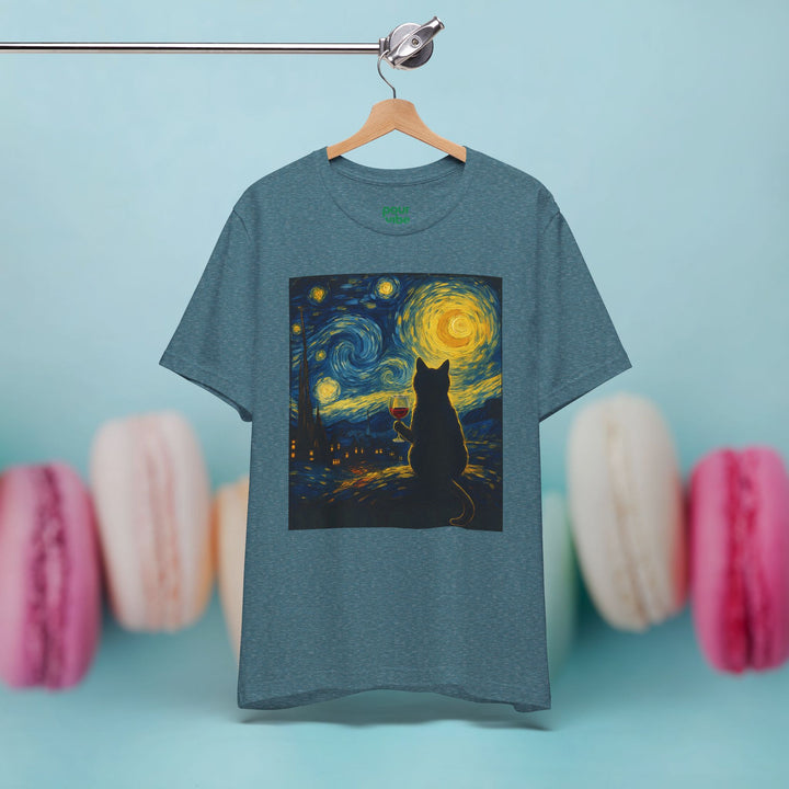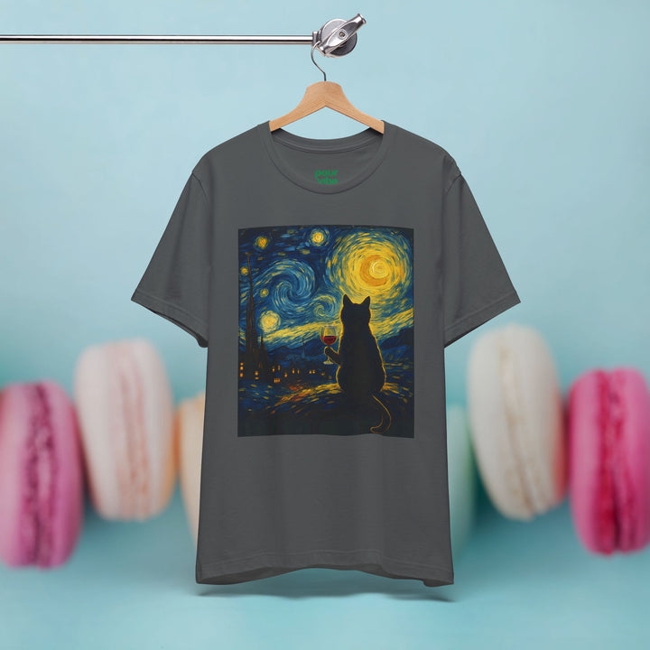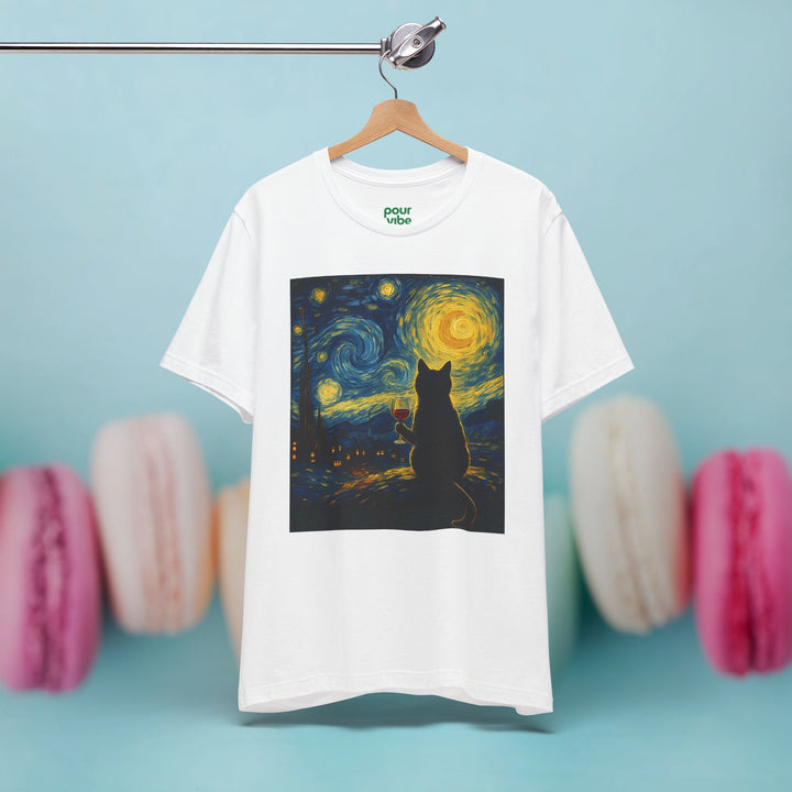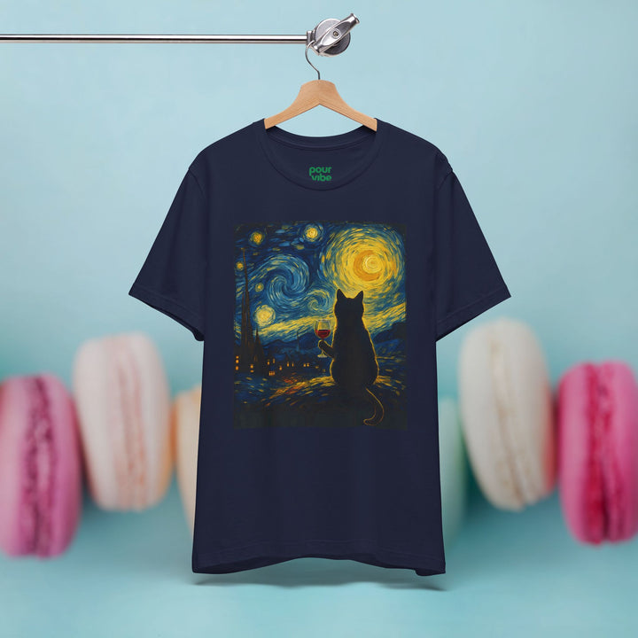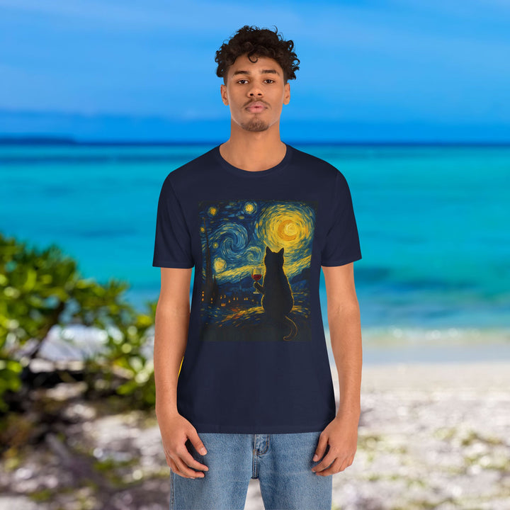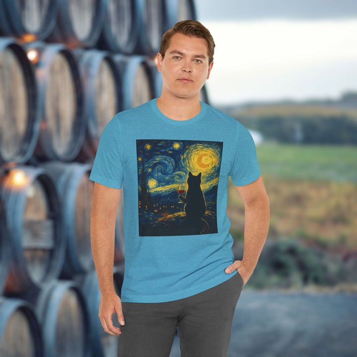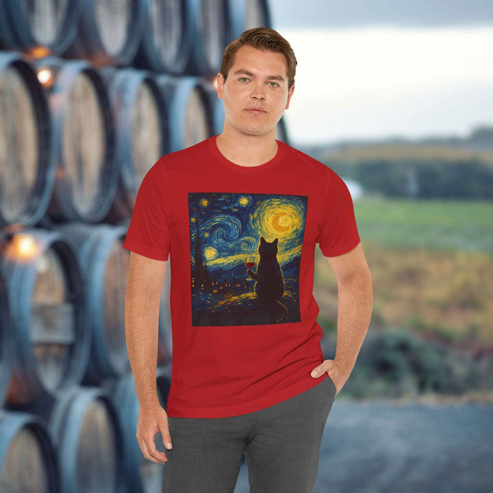 Premium T-Shirt for Men, Van Gogh Design, Cat Stylish Tee, The Starry Night Graphic Tee, Wine Cat Shirt, Tee Gift