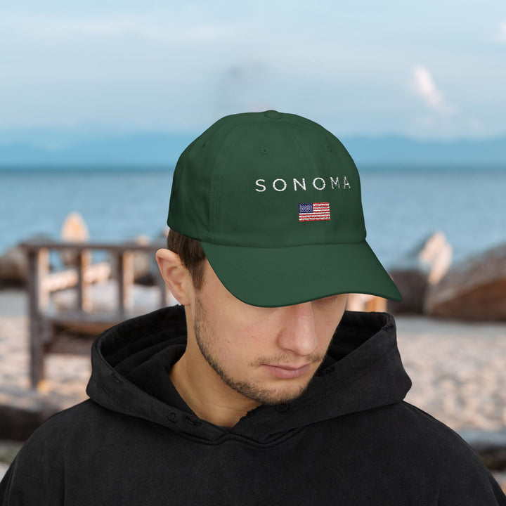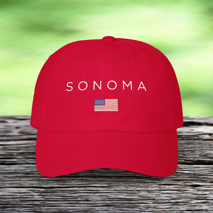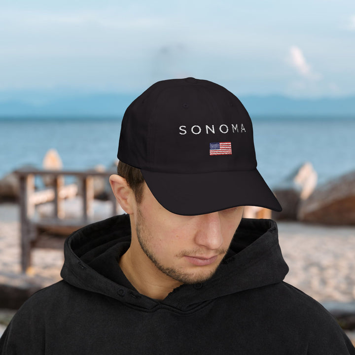 Stylish Classic Cap for Men & Women, Sonoma, 100% Cotton, Breathable, Adjustable Strap, All-Season Fit, Permacurv® Visor, Clean Look with Embroidered Design, USA flag