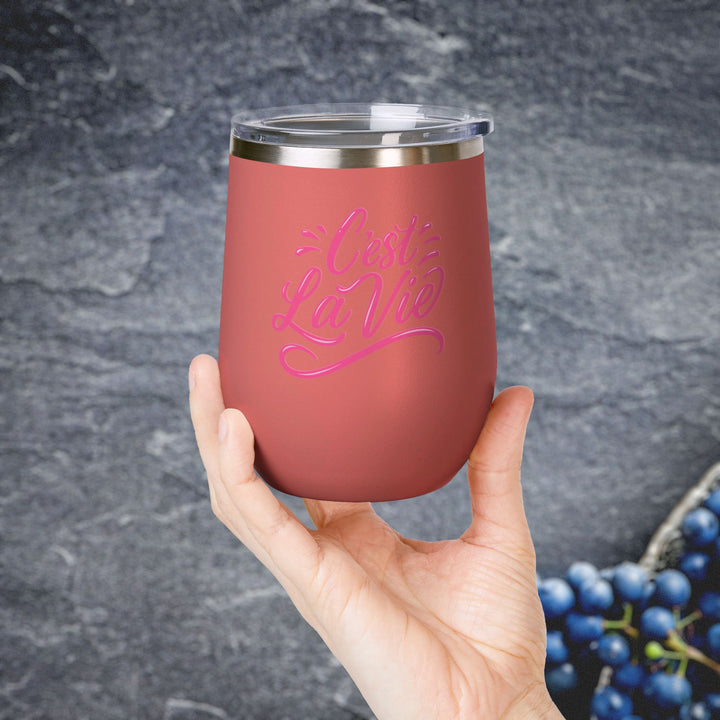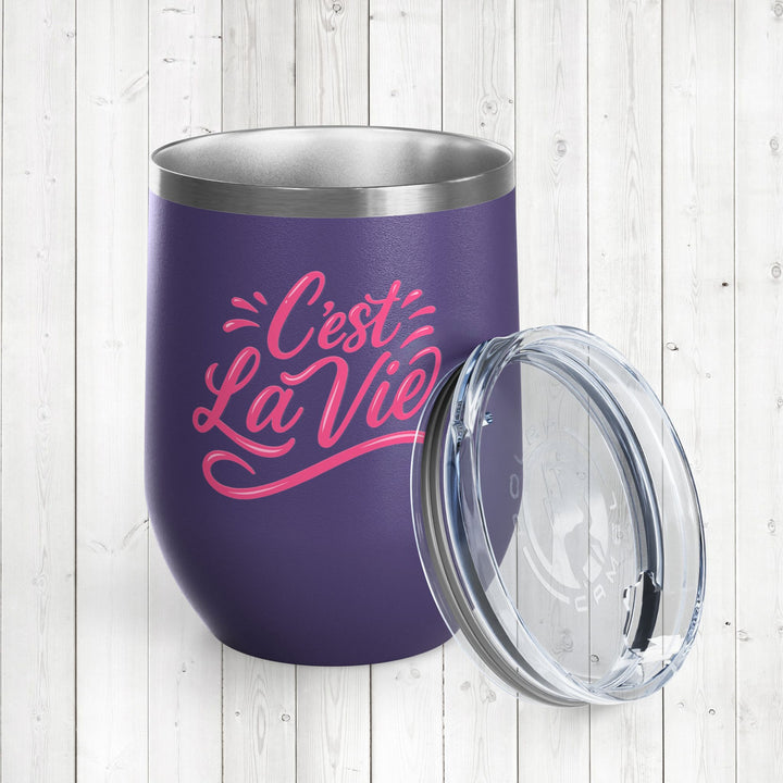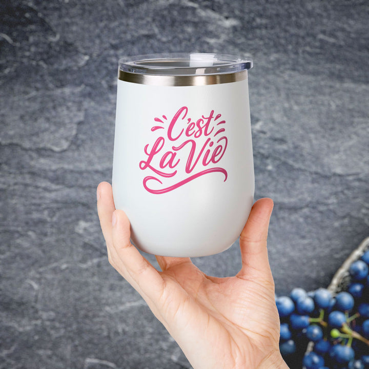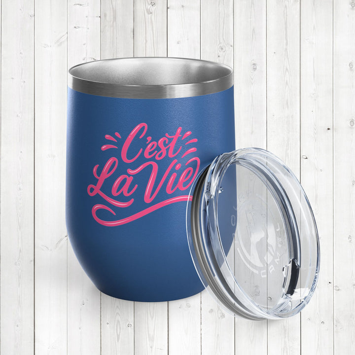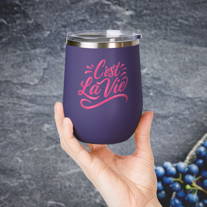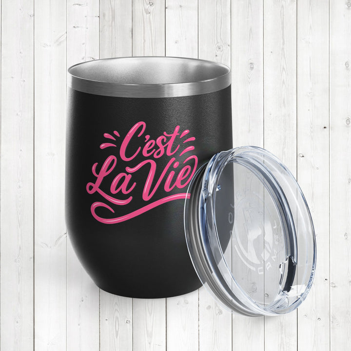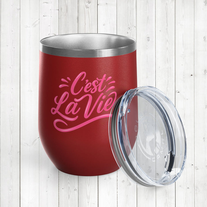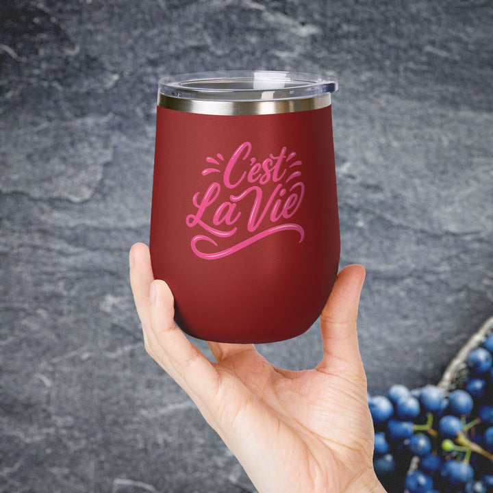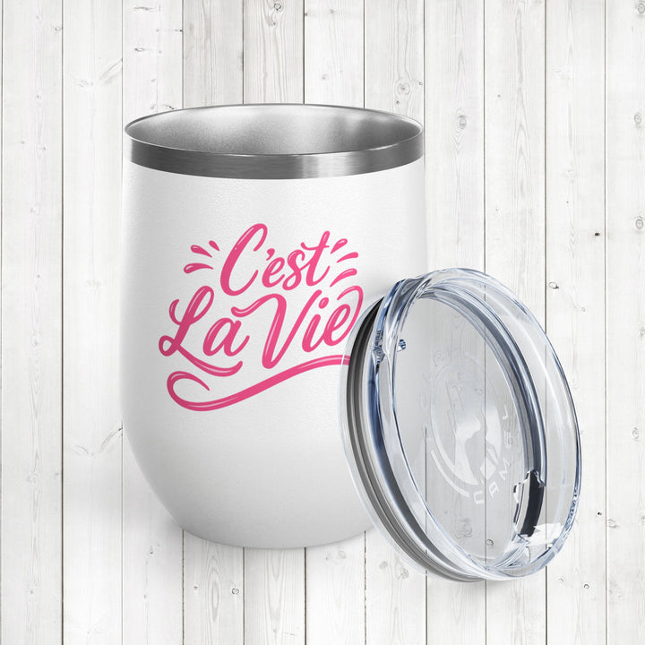 Stylish Insulated Wine Tumbler Cup, Durable Stainless Steel Travel Mug with Lid, Double Wall for Hot or Cold Drinks, Perfect for Wine, Cocktails or Coffee and More, c"est la vie france