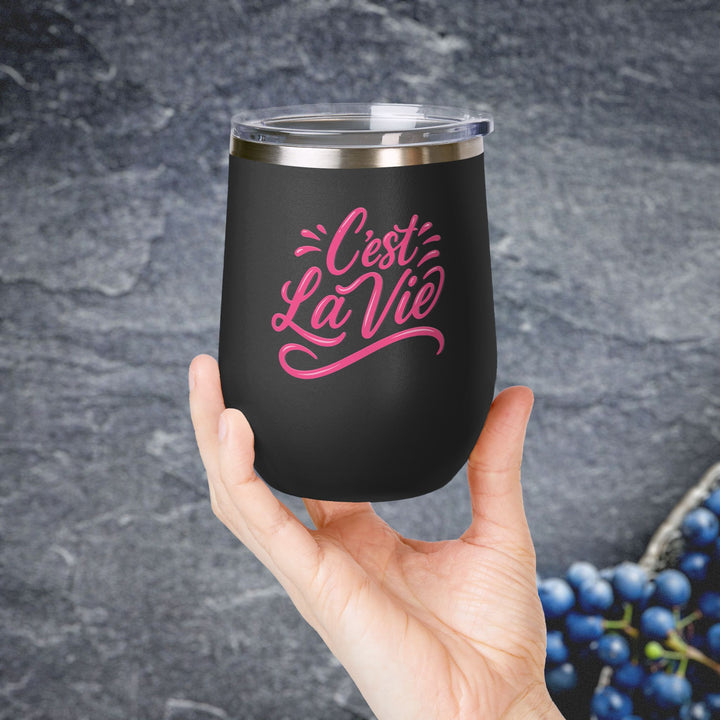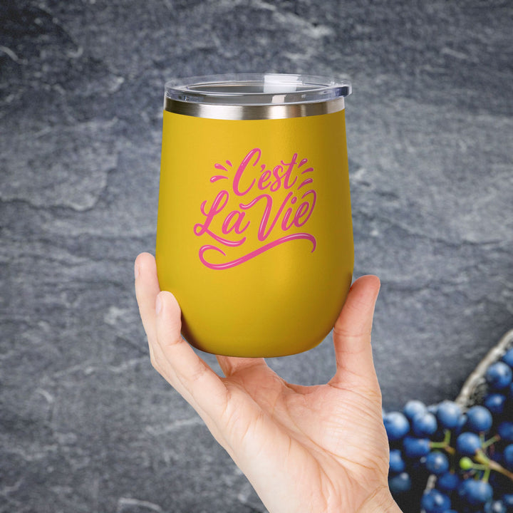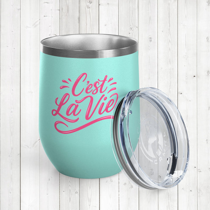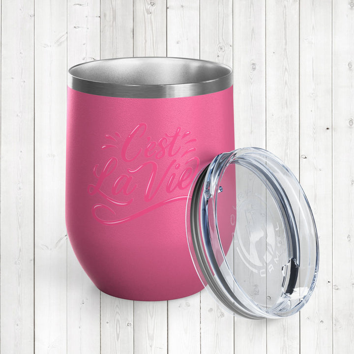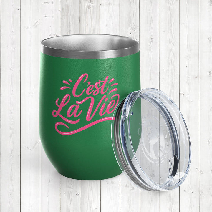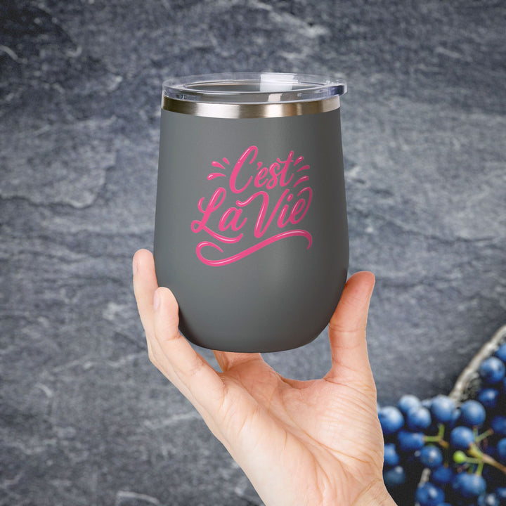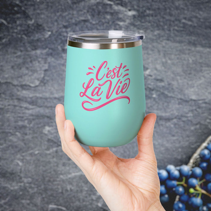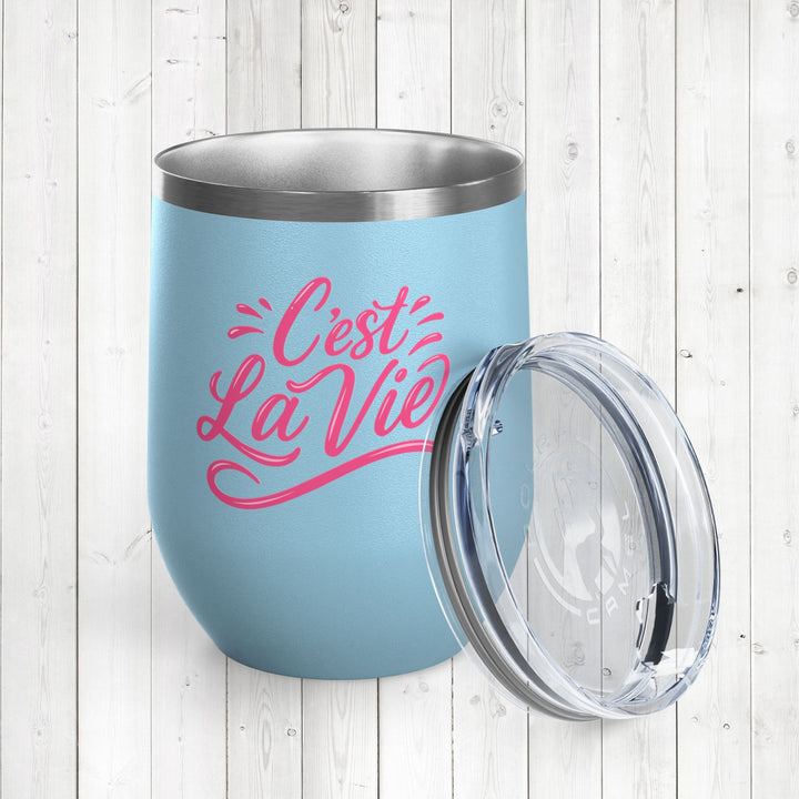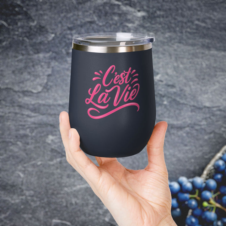 Stylish Insulated Wine Tumbler Cup, Durable Stainless Steel Travel Mug with Lid, Double Wall for Hot or Cold Drinks, Perfect for Wine, Cocktails or Coffee and More, c"est la vie france