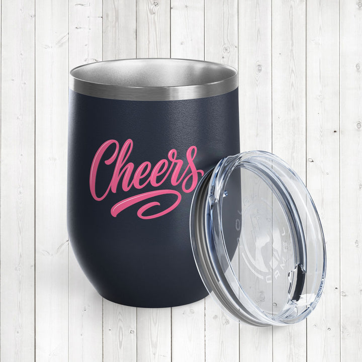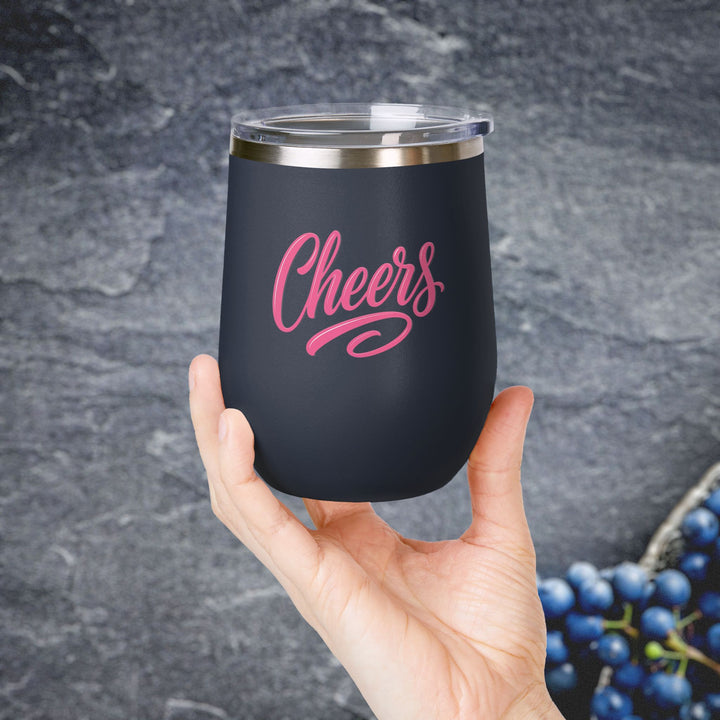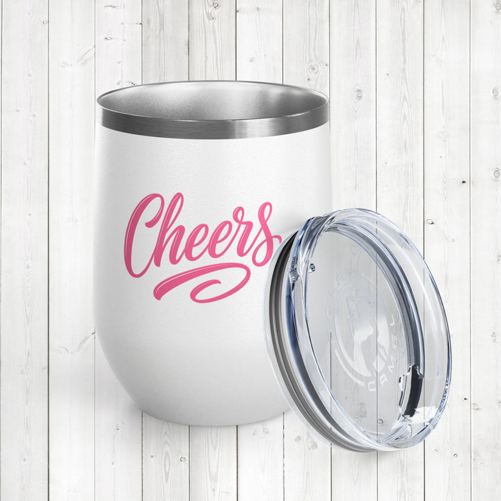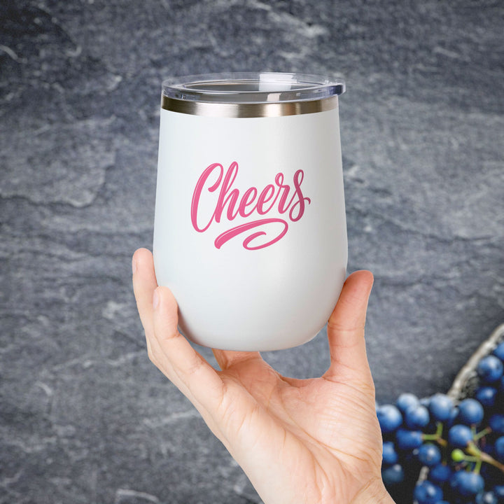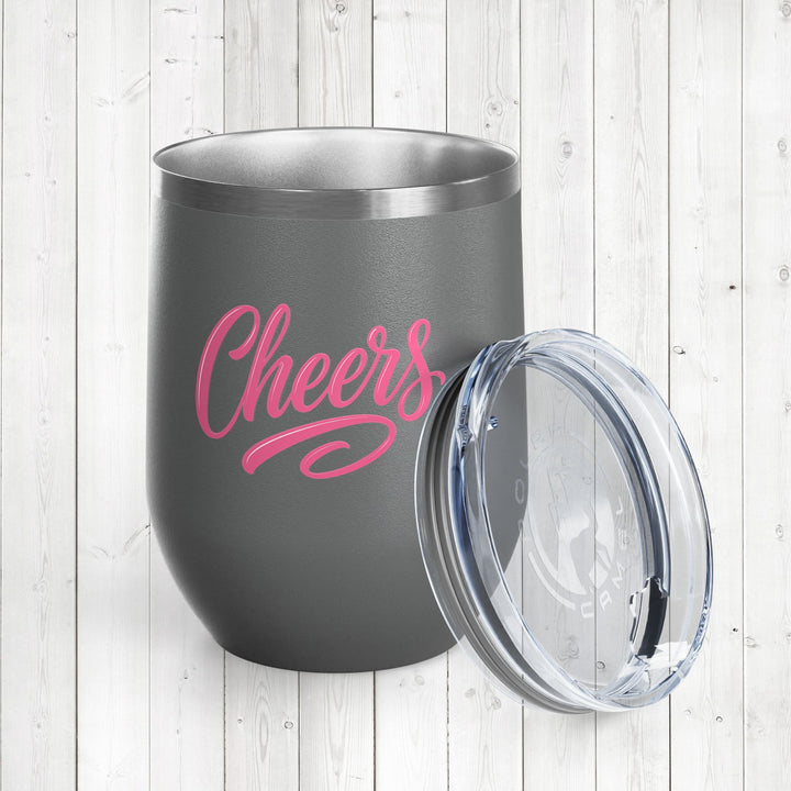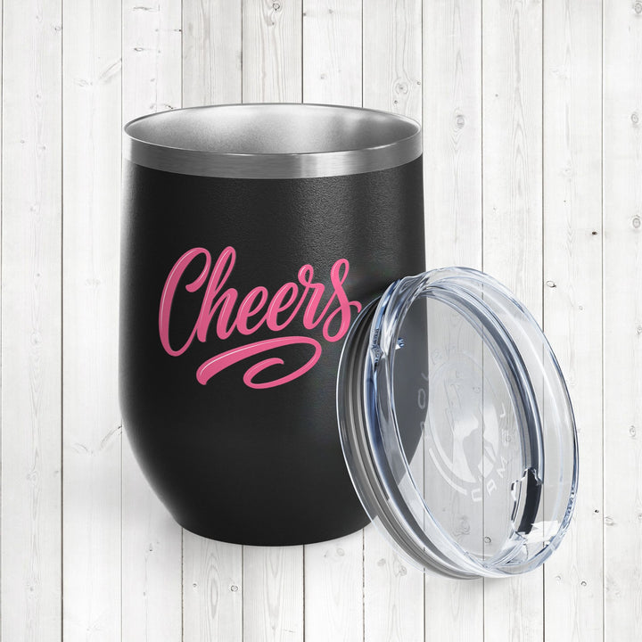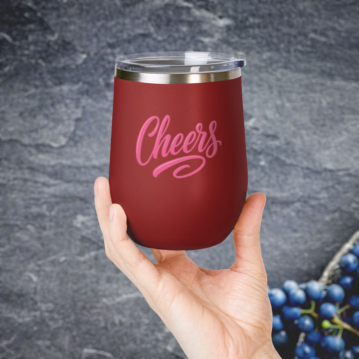Stylish Insulated Wine Tumbler Cup, Durable Stainless Steel Travel Mug with Lid, Double Wall for Hot or Cold Drinks, Perfect for Wine, Cocktails or Coffee and More, Cheers