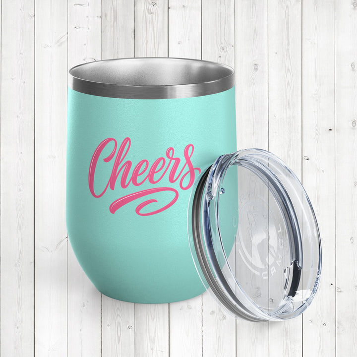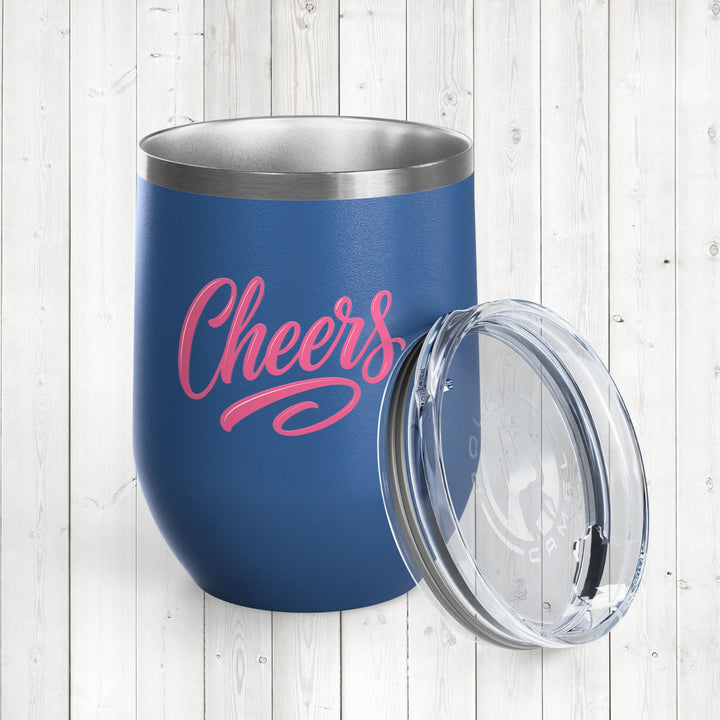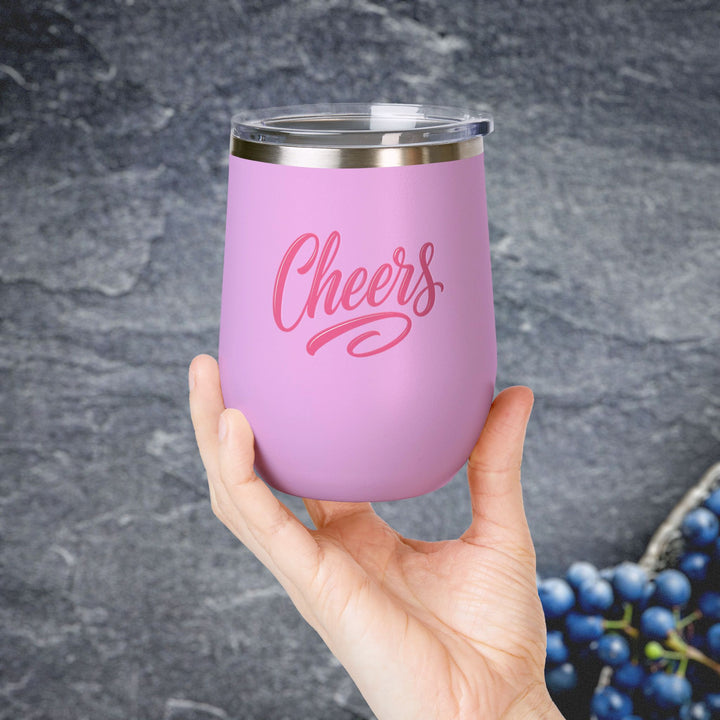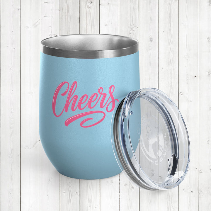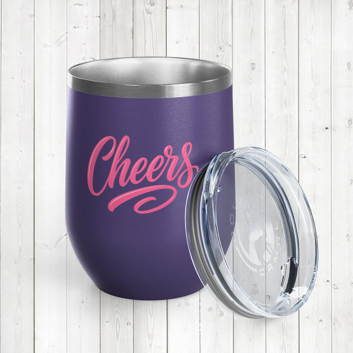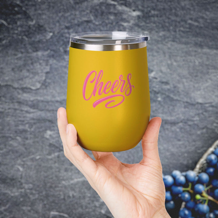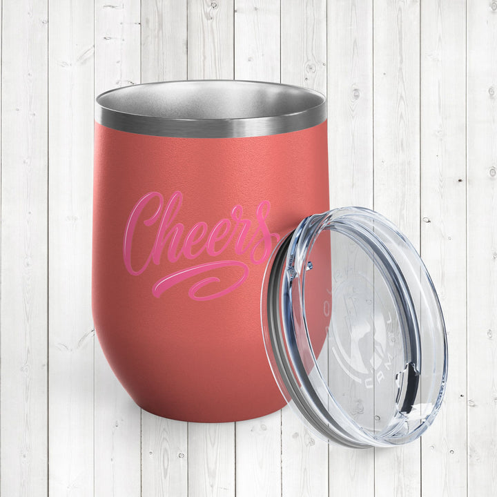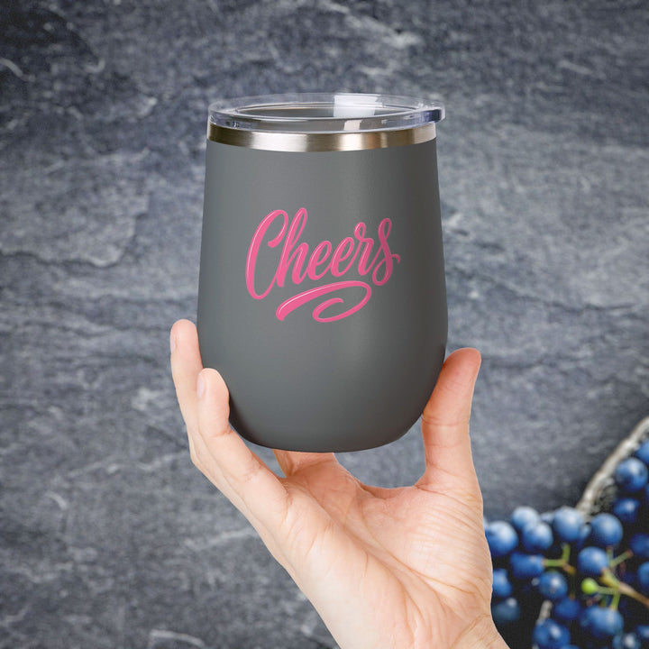 Stylish Insulated Wine Tumbler Cup, Durable Stainless Steel Travel Mug with Lid, Double Wall for Hot or Cold Drinks, Perfect for Wine, Cocktails or Coffee and More, Cheers