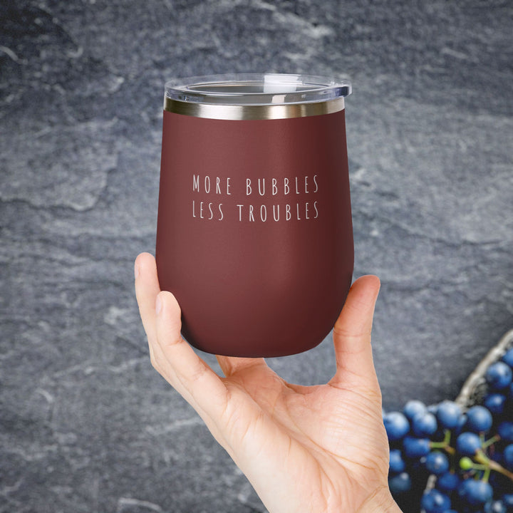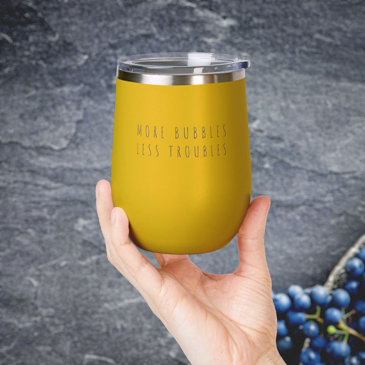 Stylish Insulated Wine Tumbler Cup, Durable Stainless Steel Travel Mug with Lid, Double Wall for Hot or Cold Drinks, Perfect for Wine, Cocktails or Coffee, More Bubbles Less Troubles